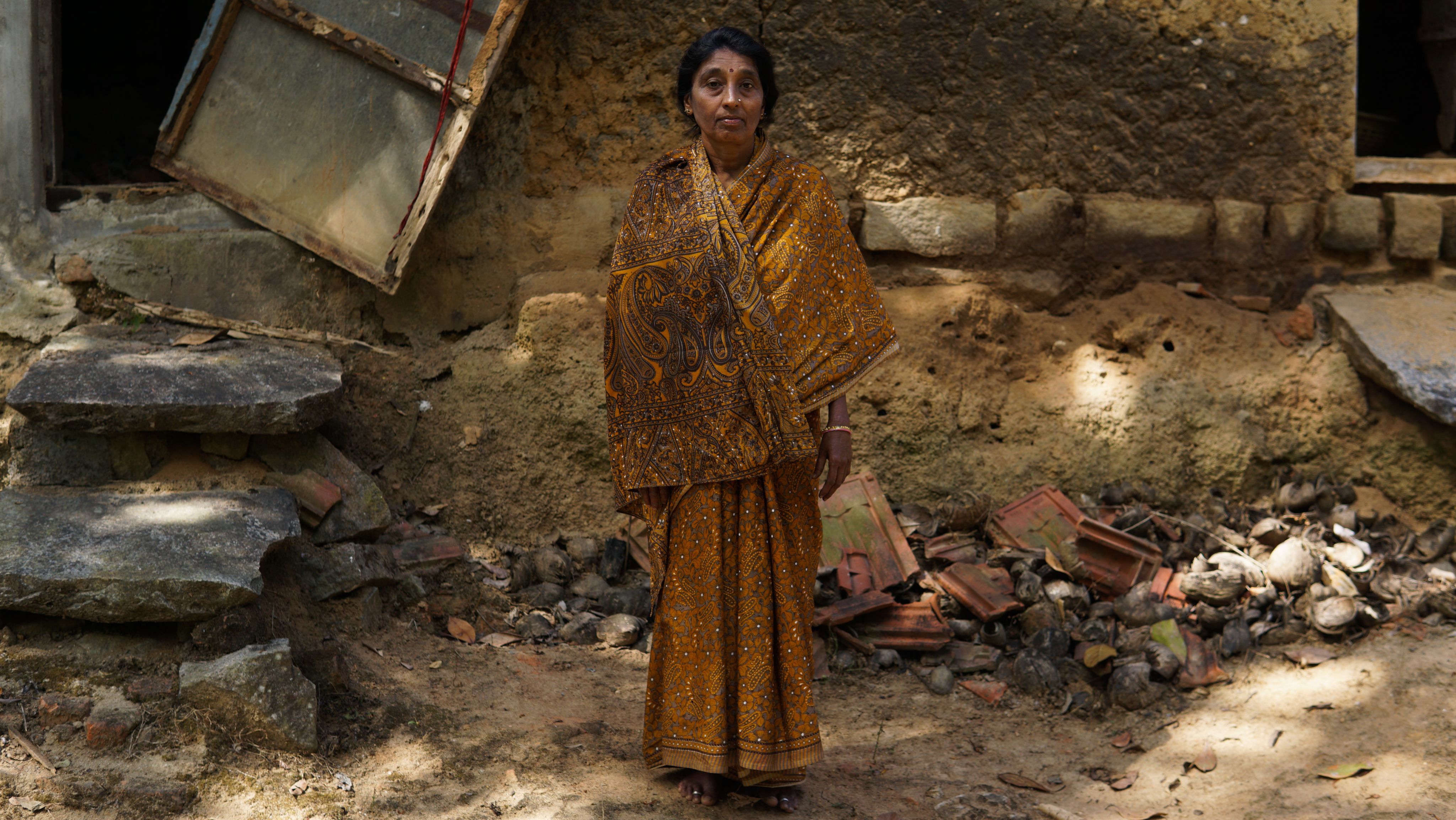 Jayalakshmi points out the spot where her husband was killed.